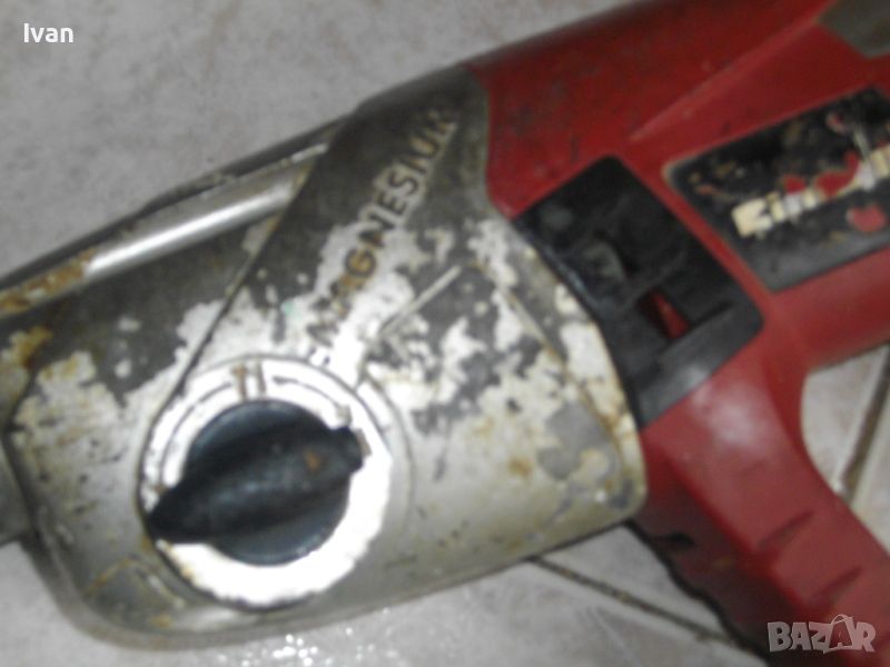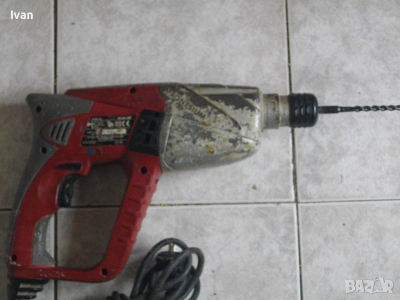RT-RH24.С машината е работено,има забележки по външният вид,но е в отлично техническо състояние.Работи много добре.3 функции-пробиване,къртене с удар и само удар.Мощност на мотора-850 вата.Обороти-0-950 в минута.Патронник-SDS.до 24мм.Производство на машината 2008 година.Регулатор обороти на спусъка.Плавен старт на шпиндела,реверс смяна посока.Автостоп-бутона е хлътнал надолу и не функционира,но това не пречи на работата на машината.Масивна здрава редукторна кутия от хромирана стомана.Корпус-твърда бакелитова пластмаса.
