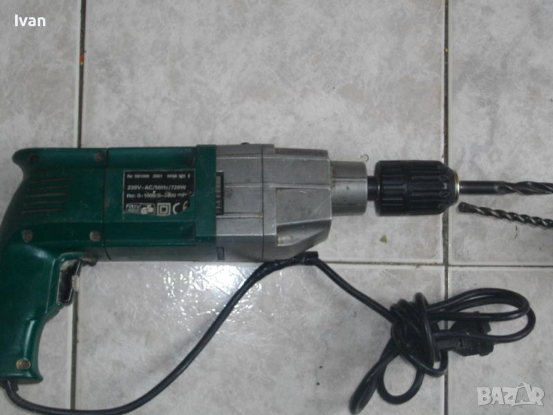 Безключов патронник размер 2-13 мм, изцяло метална масивна редукторна кутия, регулатор на обороти на спусъка. Реверс смяна посока. Автостоп на спусъка. Електронна регулация на скорост. Мощност на мотора -720 вата, обороти - скорост 1- 0-1000/минута, скорост 2- 0-3000/минута. Функция пробиване, функция удар. Евро щепсел.