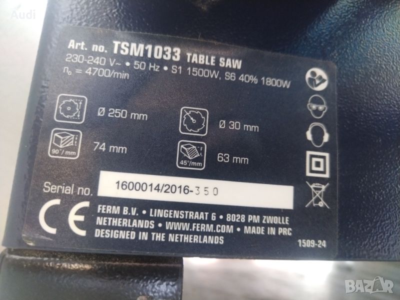 циркуляр FERM TSM1033, Ф 250 mm, 1800 W