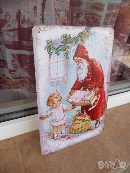 Метална ламаринена табела - Дядо Коледа с подаръците..