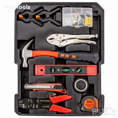 Сред инструментите ще откриете отвертки, френски ключове, клещи, макетни ножове, шестограни и много други, разпределени на четири нива, както следва: