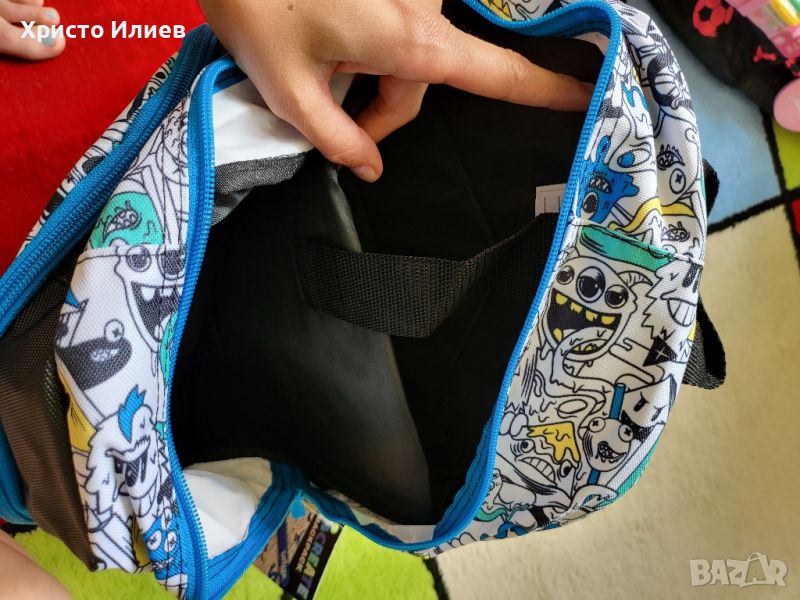 Раница Smiggle със забавен дизайн Let's Go включва 6 x химикалки за тъкани, които можете да оцветите и персонализирате с вашия собствен творчески стилОсновното отделение има вътрешен подплатен джоб за компютър (побира до 15 инча лаптоп или папка A4)Плюс 3 x външни затворени отделения с цип. Включва точка за достъп за слушалки в горния джобДвойни ръкави за бутилки за напитки. Подплатени регулируеми презрамкиЗащитна вътрешна подплата. Горна дръжка за носене. Размер на раницата: 30х42х13смТози пакет включва:▪️1 x раница Lets Go Направи си сам (В 42 см x Ш 30 см x Д 13 см)▪️1 x Маркери за промяна на цвета X12▪️1 x пакет с ароматизирани моливи X4▪️1 x контейнер за сандвичи Giggle By Smiggle (Ш 12,3 см x В 12,3 см x Д 4,5 см)▪️1 x A5 заключващ се бележник с шпионска писалка (80 листа, страница с линии)