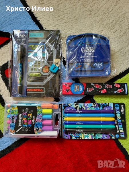 Ученическа раница Smiggle комплект с маркери кутия за храна моливи и таен дневник