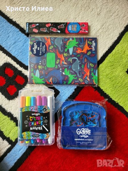 Този пакет включва:1 x Wonder World Classic Lite раница1 x Маркери за промяна на цвета X121 x пакет с ароматизирани моливи X41 x контейнер за сандвичи Giggle By Smiggle1 x Учебна тетрадка Wish A5Нашата класическа раница Wonder World е най-добрият продукт за училище, спорт, пътуване и много повече! Разполага с 3 отделения с цип за съхранение на кутия за обяд, калъф за молив и техника, плюс калъф за бутилка за напитки и подплатени презрамки. Разгледайте напълно забавния принт, идеален за добавяне на нотка стил на Smiggle!Подплатени регулируеми презрамкиДръжка за носене3 отделения с цип: основно с двоен ципКалъф за бутилка за напиткиЕтикет с имеПодплатени регулируеми презрамкиДръжка за носене3 отделения с цип: основно с двоен ципКалъф за бутилка за напиткиЕтикет с имеВ 42 см X Д 18,5 см X Ш 31,5 смПроменете цвета, докато рисувате! Изберете своя цветен маркер, създайте своя шедьовър и след това просто използвайте белия маркер и гледайте как рисунката ви магически променя цвета си. Тази опаковка съдържа четири ароматизирани молива 2B с гуми. Просто разтрийте молива, за да активирате страхотния, дълготраен аромат.Пригответе се за купища усмивки и кикотене с нашата любима на феновете колекция Giggle! Защитете обяда с нашия изключително удобен контейнер за сандвичи. Перфектен за предотвратяване на смачкани сандвичи и употреба в движение!Перфектен размер за сандвич / леко теглоШ 12,3 см х В 12,3 см х Д 4,5 смПишете бележки, разкази или попълвайте домашни с нашата тетрадка Wish A5! Включва редирани страници със забавен графичен печат, идеален за училище и много други!Тетрадка с линии А532 листа / 64 линирани странициШ 15 см x В 21 см (размер A5)