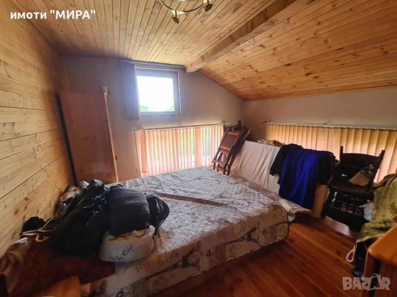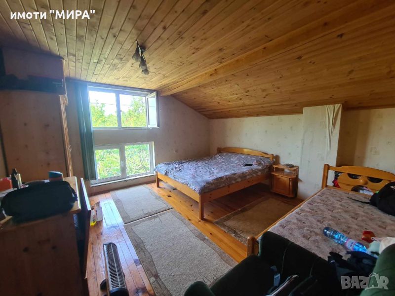 Предлагаме Ви къща с голям парцел с площ – 2008 кв.м. Разгъната застроена площ на къщата – 162 кв.м. Вътрешно разпределение : първи етаж – вестибюл, всекидневна с преход към кухненски бокс с изход към просторна веранда, санитарен възел, спалня, вътрешни стълби водещи към вестибюла на втория етаж, където са разположени три спални, санитарен възел. Разполага с всички комуникации. Състоянието на имота е добро. Къщата е след основен ремонт - санирана, с PVC дограма, настилки - дървено дюшеме, стени – латекс, подновени ЕЛ и ВиК настилки. Между етажите е гредоред който е реставриран, пода е с естествен паркет. Отоплението е