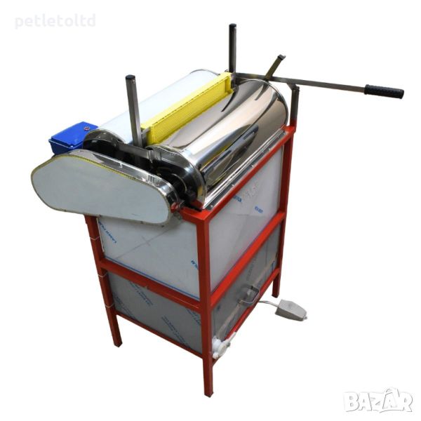 - Восъчната разпечатка пада във ваната и в перфорирания съд, където меда се отцежда и чрез канелата се източва в подходящ съд