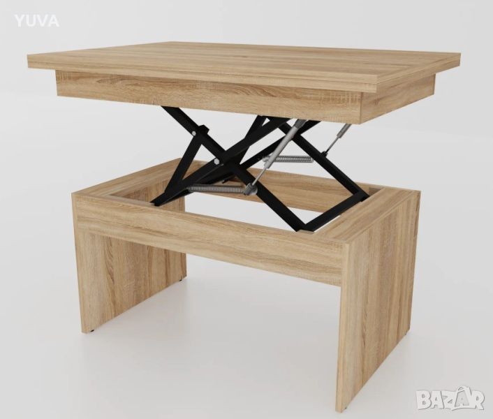 Масата се трансформира от кафе в трапезарна с помощта на повдигащ механизъм с газов амортисьор и пружина.