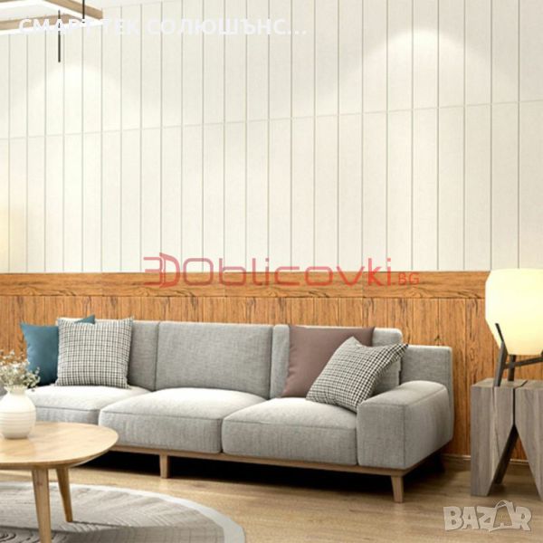 - Дизайн: 3D релефен тапет бяла дървесна облицовка