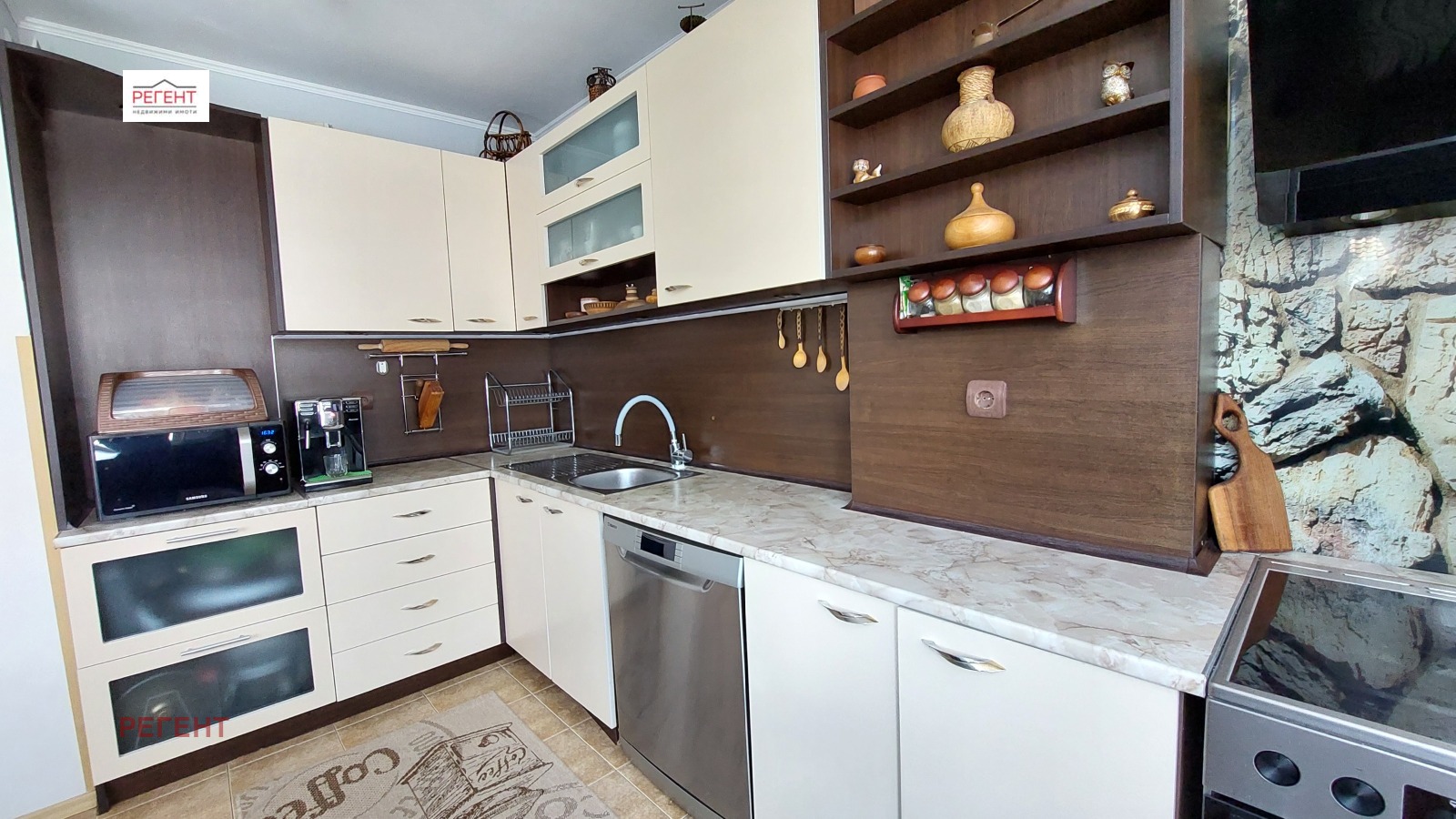 Регент ООД предлага на Вашето внимание тристаен, обзаведен, тухлен апартамент в кв. Палаузово (Бичкиня), към който прилежи широк гараж под сградата. Жилището е с чиста жилищна площ 80 кв.м., която е разпределена в кухненски кът, трапезария, всекидневна, голям балкон, мокро помещение, две спални, тоалетна, баня; прилежаща маза, таванско помещение и споменатия гараж. Жилището се продава оборудвано и обзаведено; има изградена инсталация за локално отопление, а сградата е газифицирана; в стаите са инсталирани климатици; положена е вътрешна термоизолация на стени и тавани; външна изолация на една от стаите. За повече информация и оглед се обърнете към брокера на обявата Красен Дойков на тел. 0887602324.