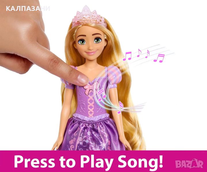 Вдъхновена от анимационния герой от "Tangled" на Disney, тази жизнена и красива кукла Рапунцел е готова за приключения! Феновете ще се радват да се присъединят, докато куклата Рапунцел пее характерната си песен на английски „When Will My Life Begin?“ Облечена в класическото си лилаво облекло, тази кукла Рапунцел пее с едно натискане на бутон. Децата могат да пресъздадат любимите си филмови моменти или да измислят свои собствени истории за Рапунцел. Куклата не може да стои сама. Цветовете и декорациите могат да варират.
