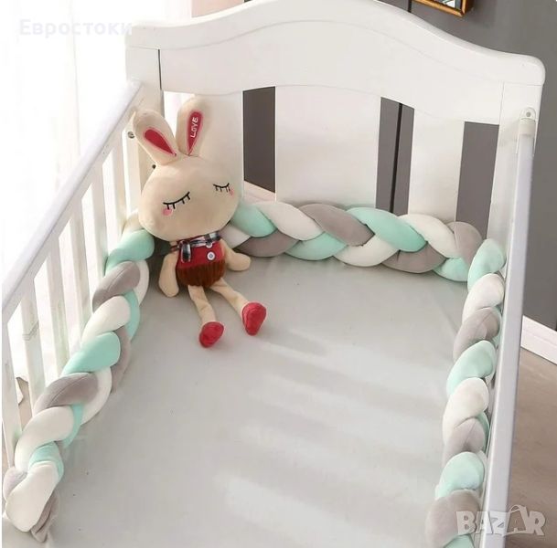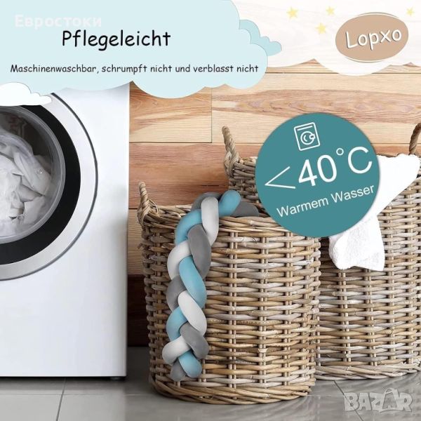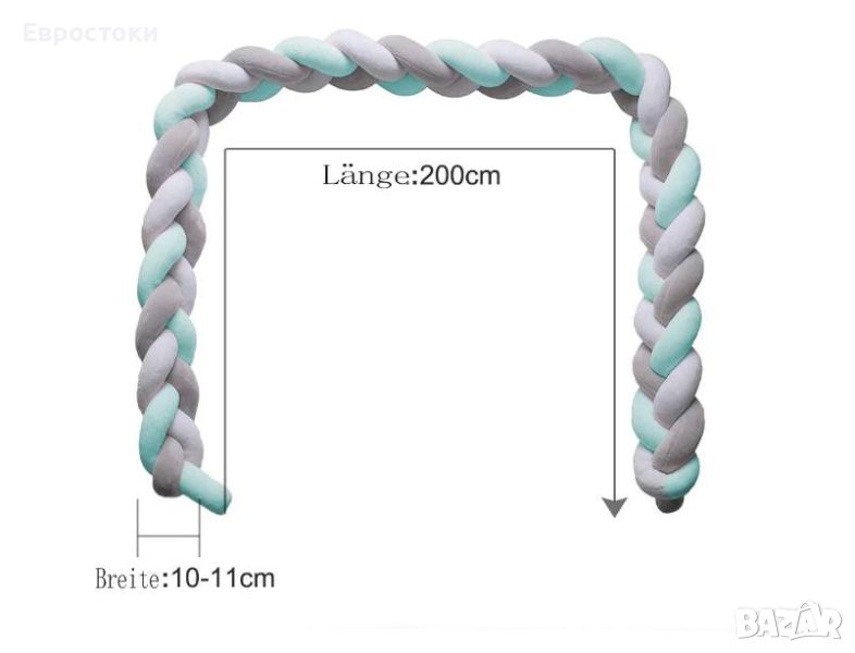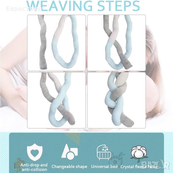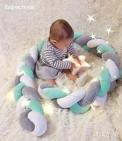 Плетена възглавница за бебешко легло 200 см, декоративна възглавница, възглавница за диван (сиво/бяло/зелено, сиво/бяло/синьо ).