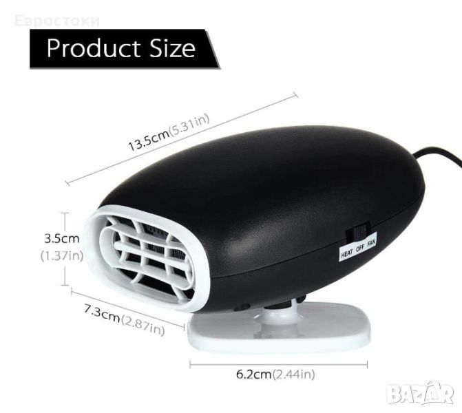 Електрически нагревател за кола 12V 2-в-1, нагревател за кола & охлаждащ вентилатор размразяващ за кола предно стъкло бърз вентилатор нагревател размразяване, 12V, 150W, черен/сив.