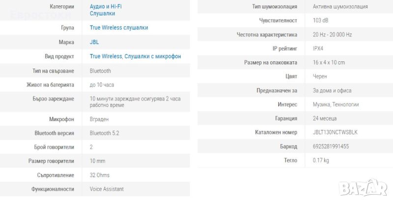 С рейтинг IPX4 няма да се притеснявате, че ще ги изпуснете във вода - Tune 130NC ви дават надеждност и производителност.