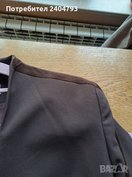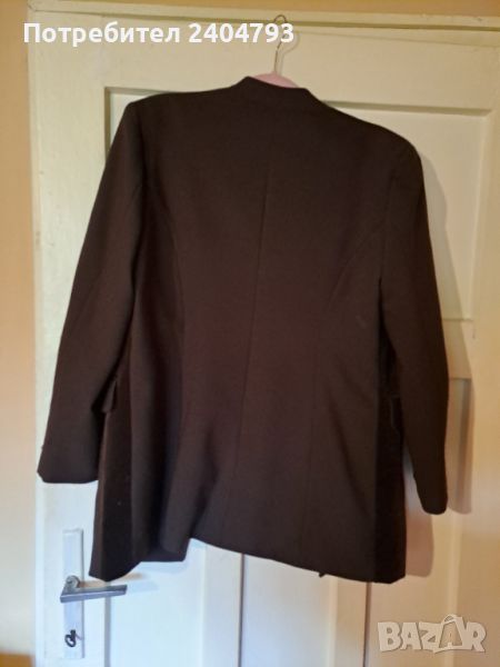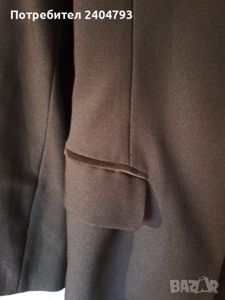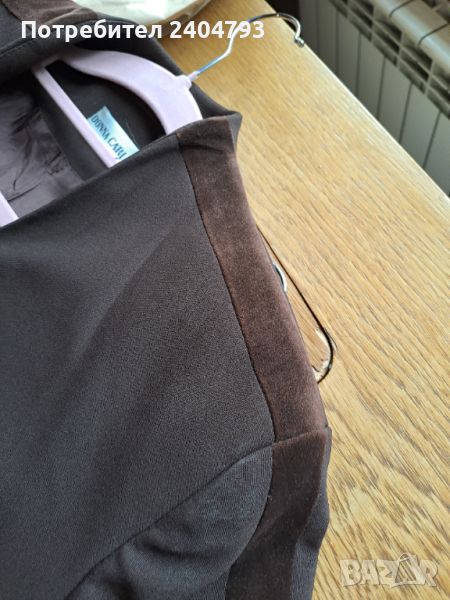 Продавам марково италианско сако Donna Carla, тъмно кафяво, дълго, с кадифени кантове на ръкави, рамене и странично. Размер - 42