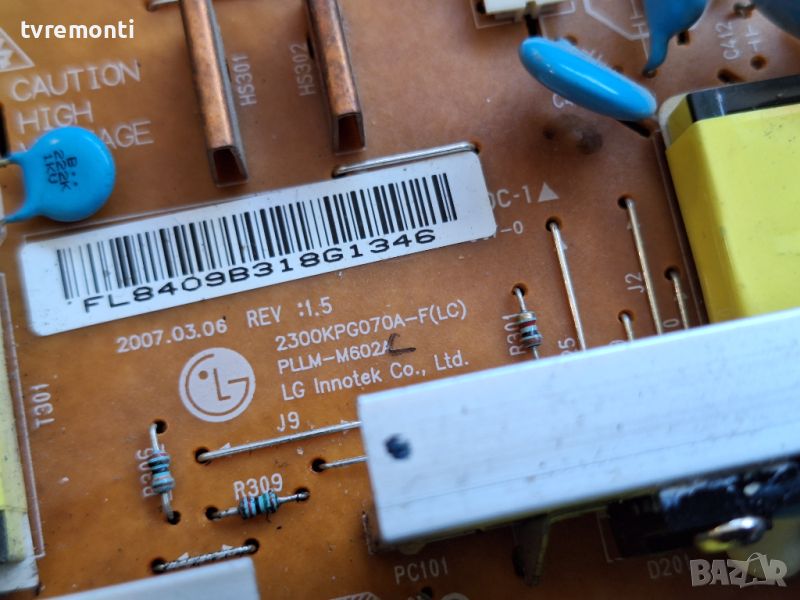 Power Supply PLLM-M602A 6871TPT318G 2300KPG070A-F(LC) 2300KPG070A-F LG 22LS4R. for 22inc DISPLAY борда е гарантирано работещ Демонтиран от телевизор LG модел 22LS4R. със счупен дисплей тествана от нашия техник Ремонт на всички марки съвременни телевизори
