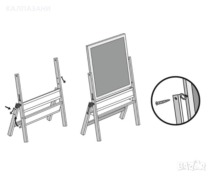 С отделение за съхранение - под дъската има отделение за съхранение, върху което могат да се съхраняват тебешири, гъба и магнити.