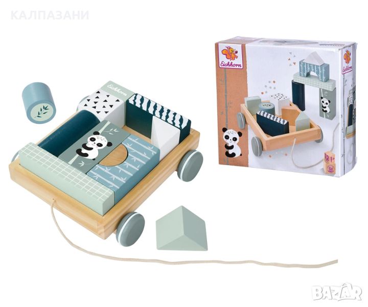 Модерното строително ремарке от Eichhorn тренира и насърчава креативността, фината моторика и координацията око-ръка с многобройни градивни елементи в различни цветове и форми. Състои се от 11 строителни блока и е с размери 18x17.5cm. Ремаркето е с дървени гуми със силиконови рингове, така че колелата са безшумни и не оставят следи. Подходящо за деца от една година.