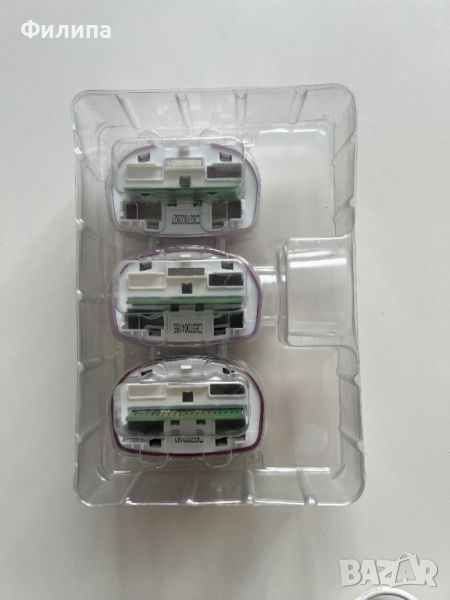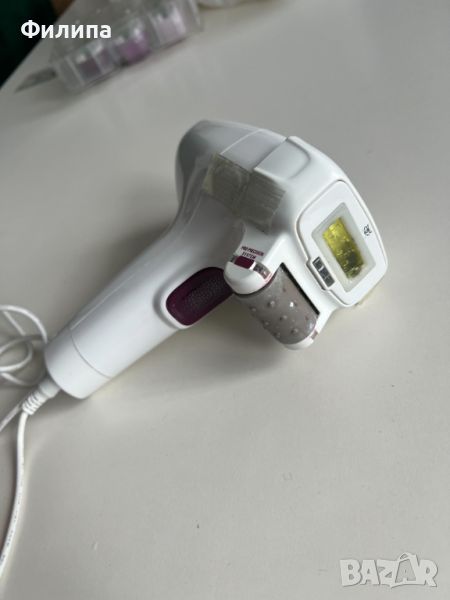 Фотоепилаторът е използван много малко и си седи така в шкафа. Не знам колко импулса остават в тази глава, но все още не е светнала лампичката за смяна. Към него има 3 допълнителни глави, всяка с по 75000 импулса.