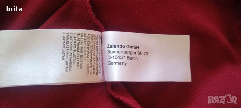Роклята е на немската марка Zalando, произведена си е в Германия.Размер S, дължина от рамото 98 см. По плътно трико, пада и описва тялото добре. Стои елегантно и стилно.