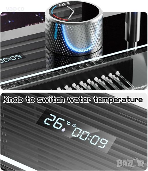 Висококачествена мултифункционална мивка от неръждаема стомана. Създава многофункционално работно пространство, за да можете удобно да миете плодове и зеленчуци с нейния уникален водопад и подходяща дренажна кошница. Единичната голяма купа осигурява достатъчно пространство за накисване и почистване на съдове за готвене, докато наклонената основа към единичния изместен дренаж минимизира натрупването на вода. Изработена е от неръждаема стомана с нано покритие, което я прави устойчива на отчупване, напукване или изгаряне, и осигурява години красота и надеждна работа.*** Предлагаме и филтърни системи за вода, както и мелници за хранителни отпадъци съвместими с мивката.- Размери: 75см х 46см х 23см- Дисплей с индикация за температурата на водата и продължителността на използване- Бутони за включване и изключване на всяка една от функциите- Покритие устойчиво на вода и мазнини, позволяващо лесно почистване- Специална форма за оттичане на водата- Приставка за измиване на чаши с високо налягане- Смесител за филтърна вода *(предлагаме отделно и филтърни системи за вода)- Смесител за вода с 3 режима и издърпваща се глава- Два "водопада"- Селектор за контрол на оттичането- LED ПодсветкаКомплекта включва:- Мивка- Сифон с контролер- Тръби за отпадни води- Приставка за измиване на чаши с високо налягане- Смесител за филтърна вода *(предлагаме отделно и филтърни системи за вода)- Диспенсър за сапум или веро- Смесител за вода с 3 режима и издърпваща се глава- Малка тава- Триъгълна кошница за изплакване- Дъска за рязане- Меки връзки за топла и студена- Спирателни кранове за топла и студена водаПоддържаме постоянна наличност на резервни филтри за системата.Изпращаме по Еконт.За поръчка ни трябват 2 имена, телефон и офис на Еконт.