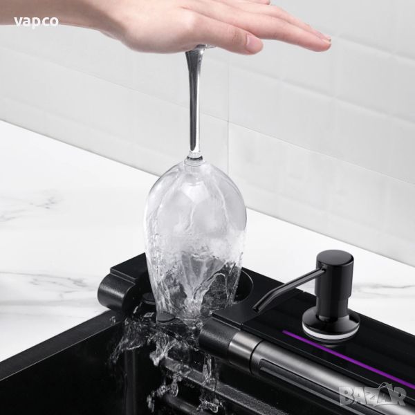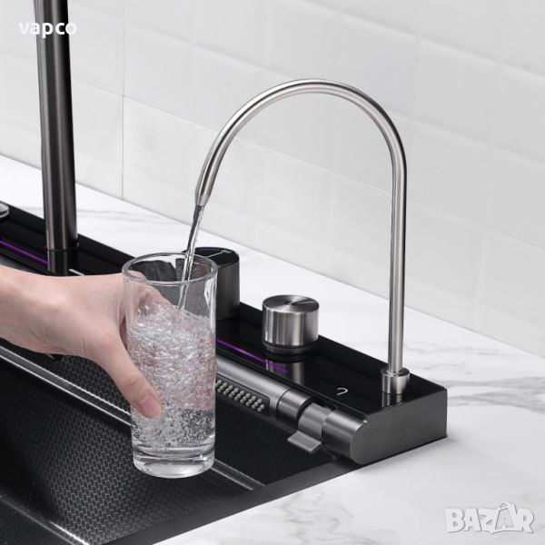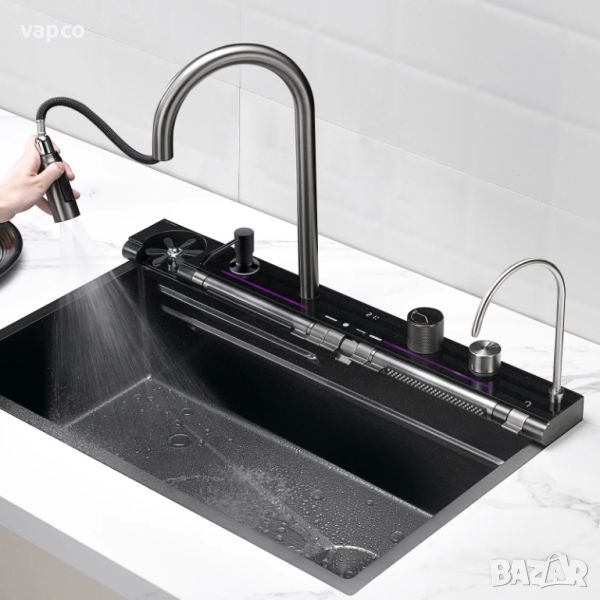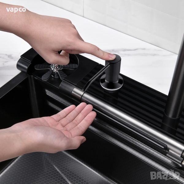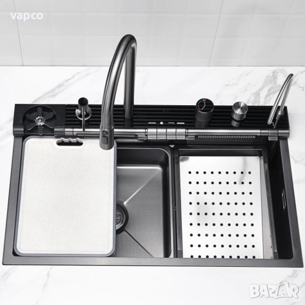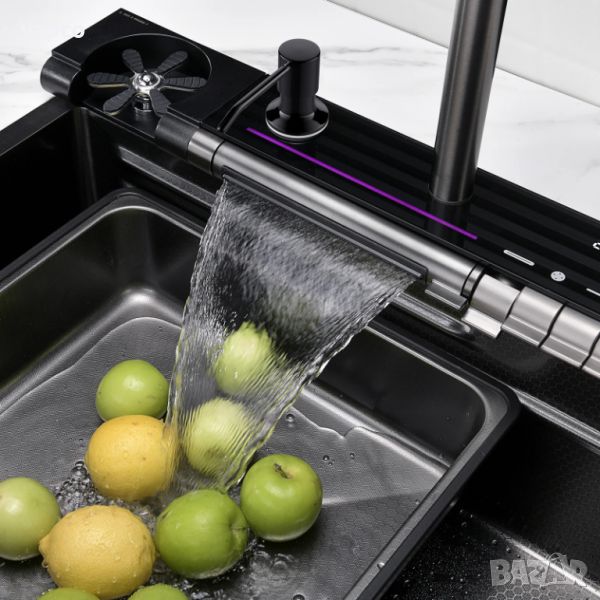 Висококачествена мултифункционална мивка от неръждаема стомана. Създава многофункционално работно пространство, за да можете удобно да миете плодове и зеленчуци с нейния