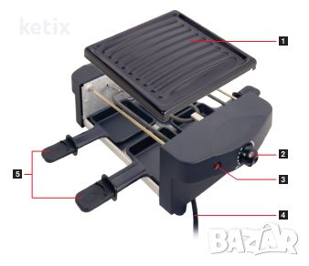 Tec Tro 650W / Raclette!Този умният кулинарен помощник предлага неустоимо удобство с две функции - раклет и грил плоча. Проектиран с подвижна незалепваща плоча, 4 тигана с незалепващо покритие и регулируем термостат, за перфектен контрол на отоплението. Насладете се на готвене без грижи с допълнителните удобства като ключ за включване/изключване, дръжка за носене и чиния, подходяща за съдомиялна машина. Голямата повърхност за готвене от 19x20см ще ви позволи да приготвите множество вкусни ястия. Насладете се на по-простотата на готвенето с Електрическа скара Tec Tro!