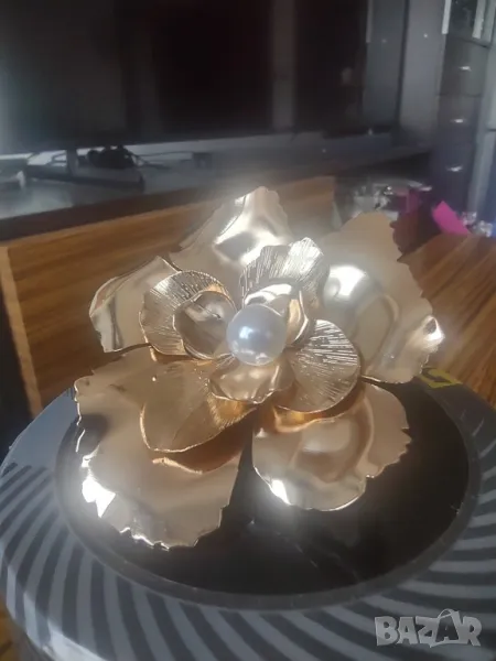 Красив златист пръстен цвете с перла за екстравагантни дами.В позиция диаметър18 мм, с опция за разширяване. Без никакви забележки. Цена 22 лева.