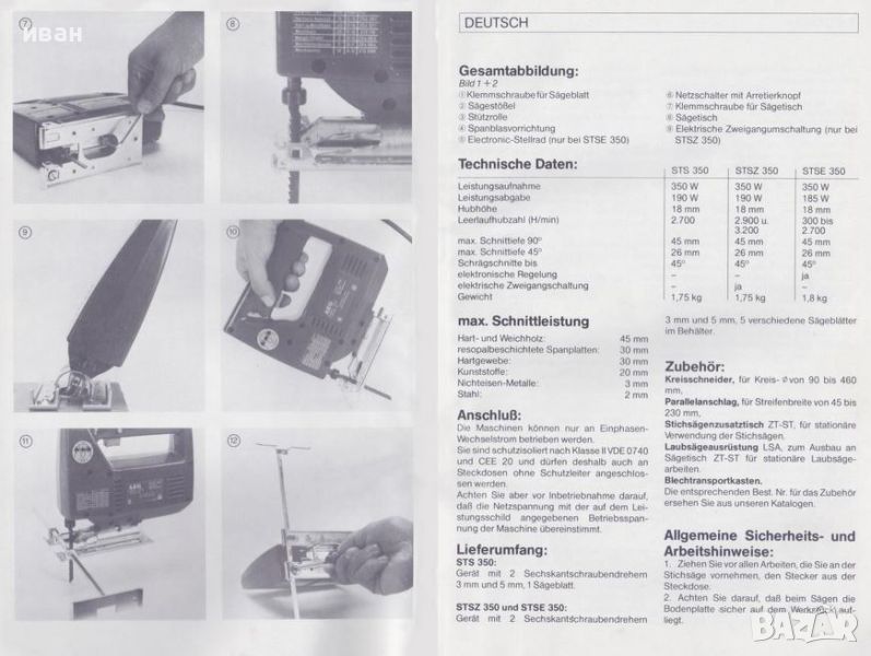 зеге има мощност 350 W и ход на ножа 26 мм. Може да се използва с твърда и мека