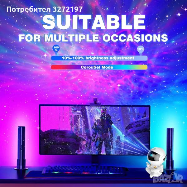 • Нощна светлина Atmosphere: Нощната светлина Shustar Galaxy Projector Astronaut Nebula Night Light е идеална за създаване на релаксираща атмосфера във всяка стая. Неговите успокояващи светлинни ефекти са идеални за празниците, подобряват настроението ви и подготвят сцената за добро прекарване.