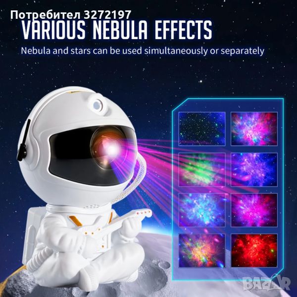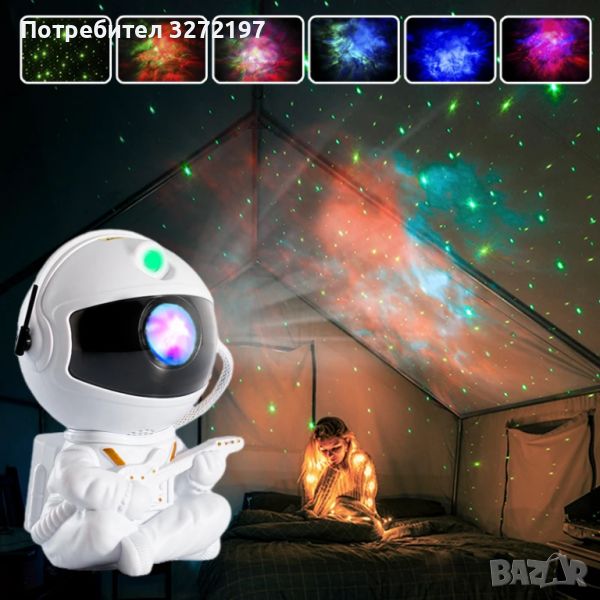 1: Галактичен проектор на астронавт - Този проектор за нощна светлина има до 8 зашеметяващи ефекта на мъглявини, придружени от зелени звезди, прожектирани върху стената или тавана, е чудесен избор за декорация на стая, създава релаксираща и уютна звездна светлина за спалнята, идеален за домашно кино, нощни срещи или се насладете на сън под звездите и много други приложения