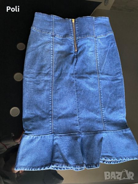 Оригинална дънкова пола. Красиво оформяща кройка. Без забележки.