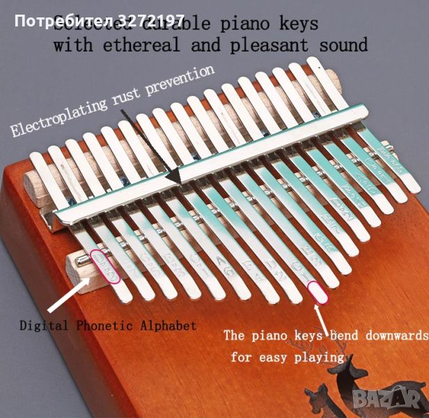 • Дизайн с 21 клавиша: Дизайнът с 21 клавиша на този инструмент го прави лесен за свирене и е идеален за начинаещи, които искат да научат основите на музиката.