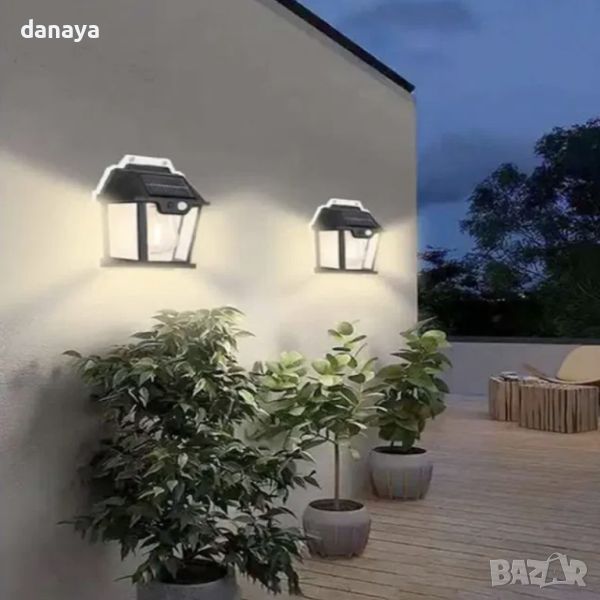Стенната соларна лампа с волфрамова нажежаема жичка има вградено захранване от 1800 mah/18650 батерия която може да се смени при нужда,