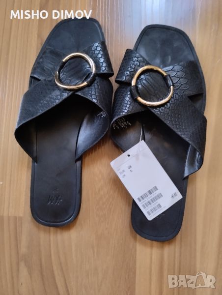 Дамски равни чехли, нови, 38 размер, дължина на стелката 25 см. Две каишки с декорация халка.