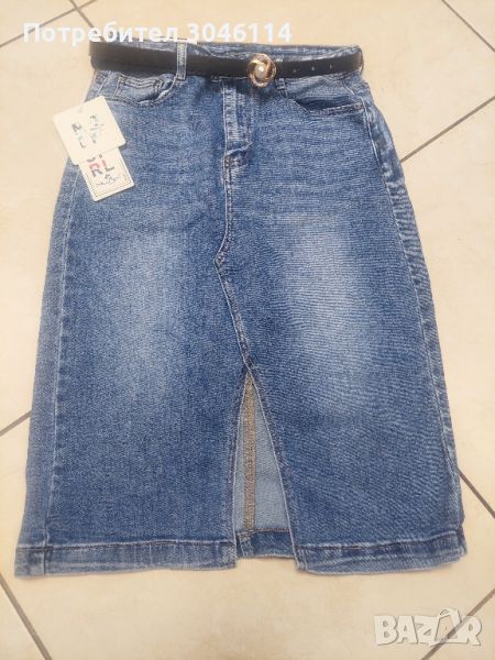дамска дънкена пола нова с етикет еластична с дължина до коляното талия 36см разтяга се до 42см ханш 45см разтяга се до55см дълга е 64см много мека и еластична материя 28 размер