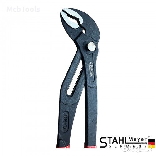Комплект клещи гарги STAHLMAYER се състои от 4 инструмента с дължина съответно 175/250/300/400 мм. Положението на челюстта се регулира с бутон, който осигурява фина настройка за оптимално адаптиране към детайли. Изработени са от хром-ванадиева стомана. Разполагат с неплъзгащи се пластмасови дръжки. Доставят се в полиестерен калъф.