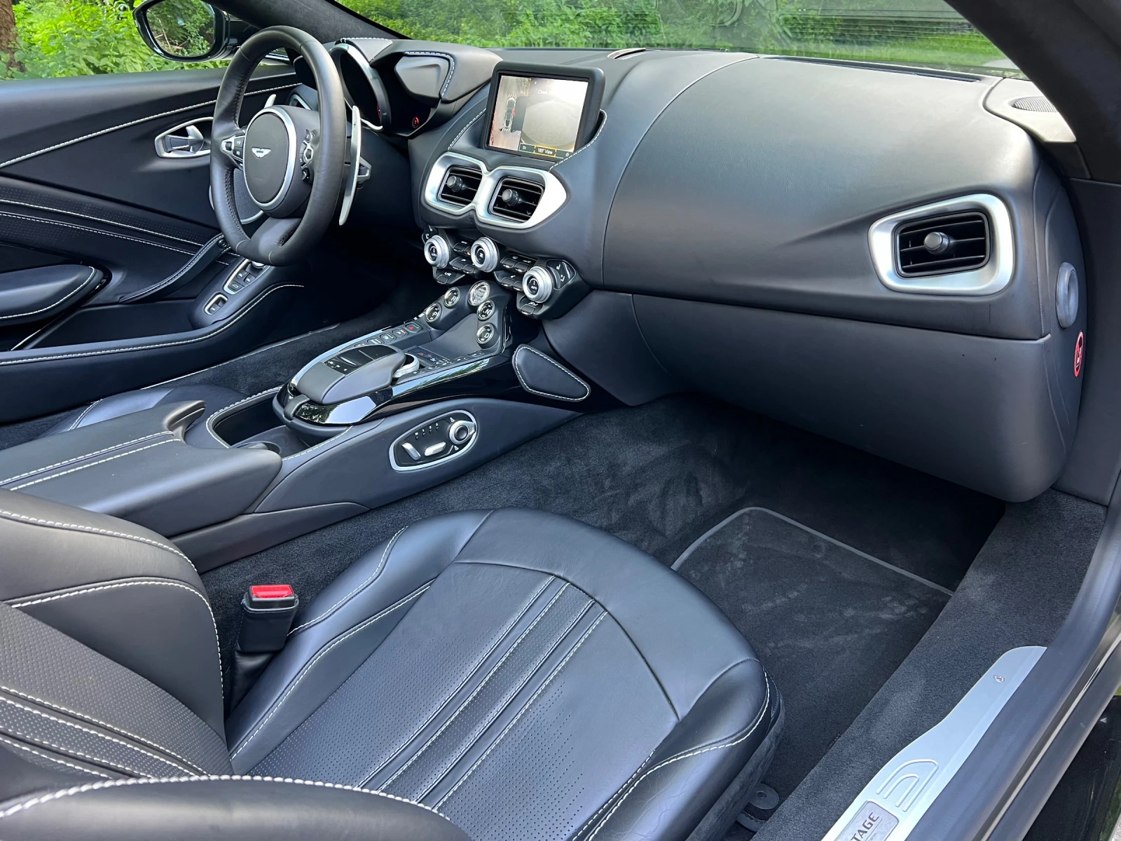 8 степенна автоматична скоростна кутия Типтроник възможност за смяна на скоростите в ръчен режим AIRBAG Двузонен климатроник Таван алкантара Навигационна система Автопилот LED Фарове Keyless GO Система за безключово запалване Камера 360 Отопление и вентилацияна седалки Електронно регулиране на амортисьорите Система за контрол на налягането в гумите Парктроник Сервотроник Ел. регулируем волан с памет Мултифункционален волан с планки за смяна на скоростите Спортен волан Волан с кожа Ел. регулируеми предни седалки Кожено табло Памет на седалките Спортни седалки Надуване на седалките Ел. стъкла Цветни стъкла Климакомфортни стъкла Ел. регулируеми външни огледала с памет Бордови компютър Амбиентно вътрешно осветление Сензор за дъжд Светлинен сензор Датчик за външна температура Bluetooth подготовка за телефон Easy Entry Система за комфортно влизане/излизане от автомобила Фабрична аларма 20 олекотени алуминиеви джанти Централно заключване с дистанционно управление Touchpad Мултимедиен контролер Поставки за чаши Спортни ауспуси Спортна решетка и въздуховоди Автоматична ръчна спирачка Адаптивни стоп светлини Алуминиеви педали Дистанционно за гараж Задно предаване Система Eco Start/Stop Пакет LED светлини Дневни светлини Дигитално табло ABS Антиблокираща система ESP Електронно стабилизираща програма ASR Система против боксуване TC тракшън контрол Спортен пакет Салон кожа: черен Aston Martin Premium Audio System USB вход: +SD slot, Bluetooth