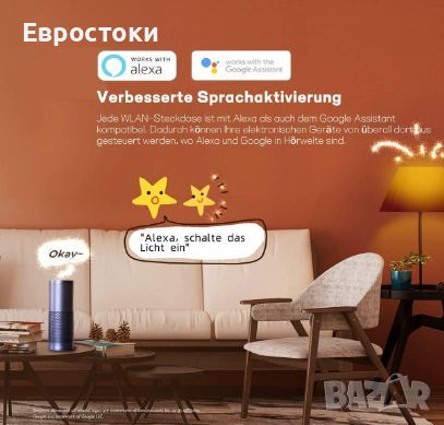 Смарт контакт Tenda Beli Smart Wi-Fi, с програмиране на изключване и включване, работи с Amazon Alexa и Google Assistant