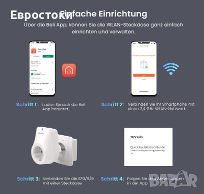 Смарт контакт Tenda Beli Smart Wi-Fi, с програмиране на изключване и включване, работи с AmazonAlexа