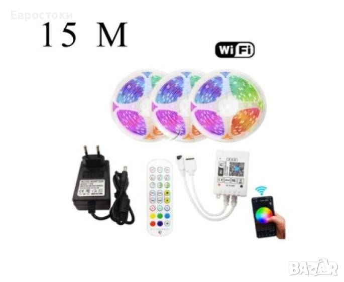 Комплект RGB LED лента с дистанционно управление, Smart Led ленти 15м, RGB музикална синхронизация, WIFI, 3 х 5 метра.