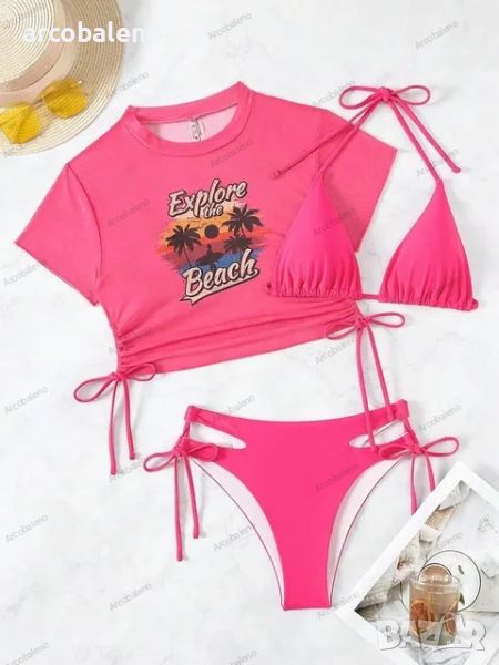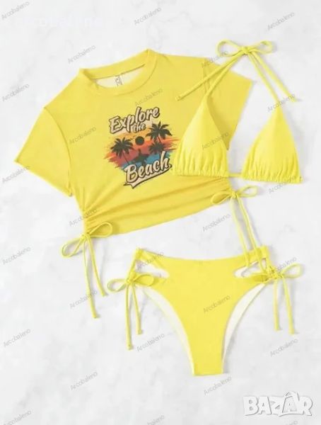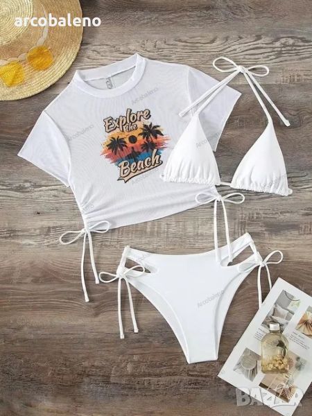 Дамски секси бански костюм от три части, плажни бикини с връзки, 5цвята