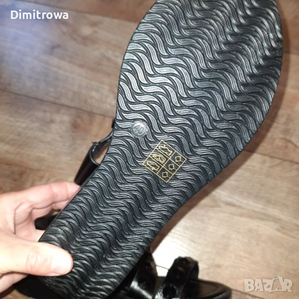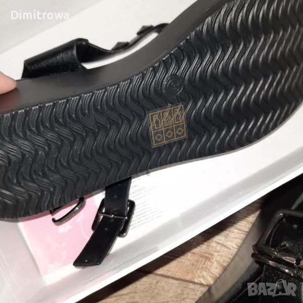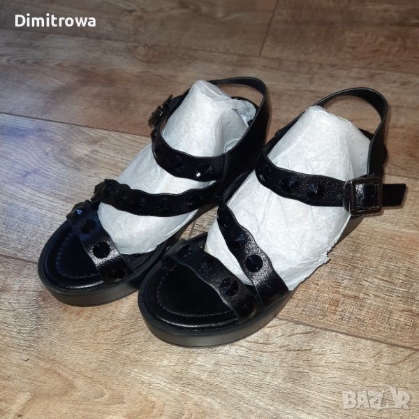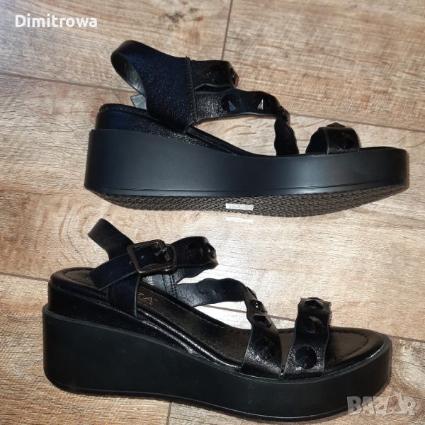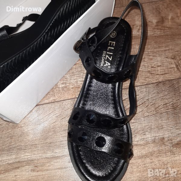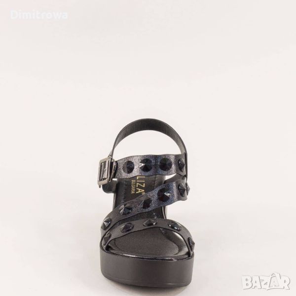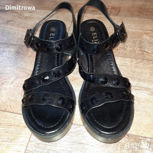 Черни дамски сандали, изработени от висококачествена еко кожа. Ходилото е на платформа, а обуването е улснено от стилна катарама на ластик. Интересен дизайн, подчертан с ефектна декорация.