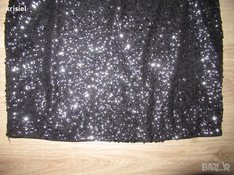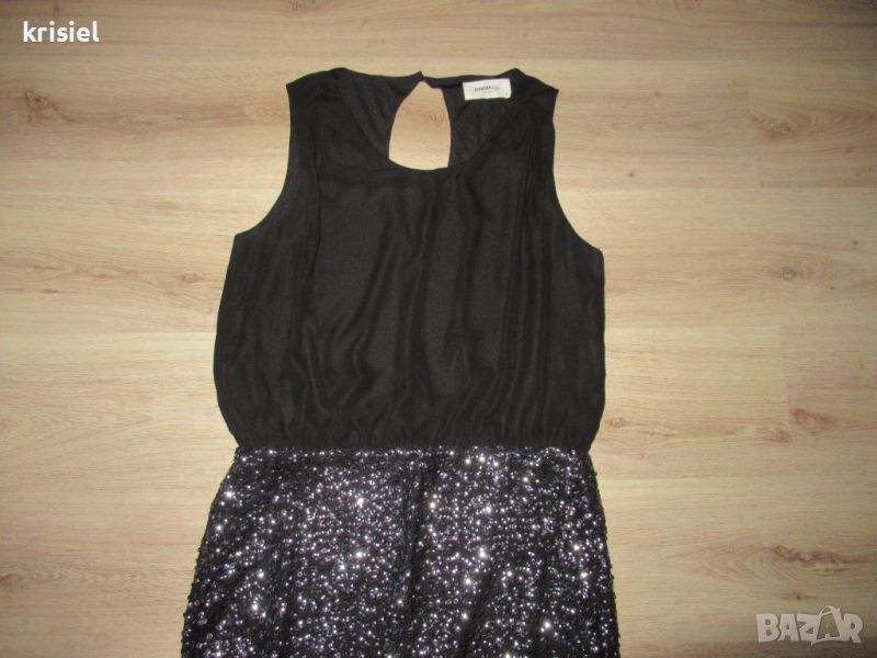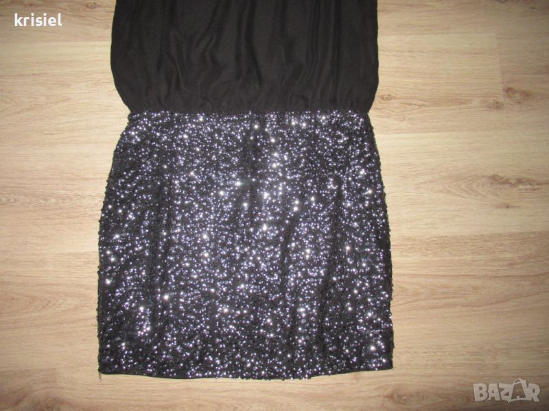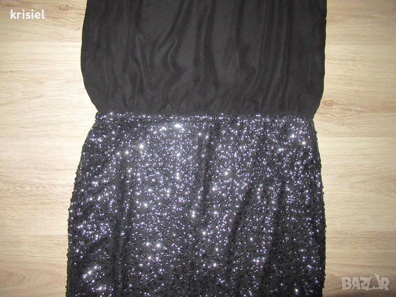 Роклята е нова.Номер XL.Хубава официален модел.Подходяща за повод.Красива елегантна кройка.Долната част е еластична със сребърни пайетки.Размерите са:дължина-96см,гръдна-52/55см,талия-43/49см,ханш-55/59см