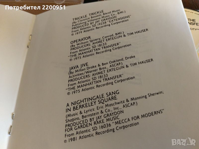 MANHATTAN TRANSFER → Обява 46124443