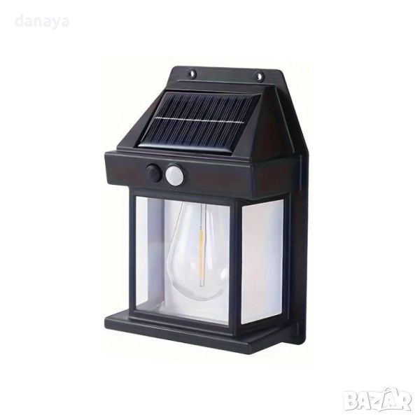 Стенната соларна лампа с волфрамова нажежаема жичка има вградено захранване от 1800 mah/18650 батерия която може да се смени при нужда,