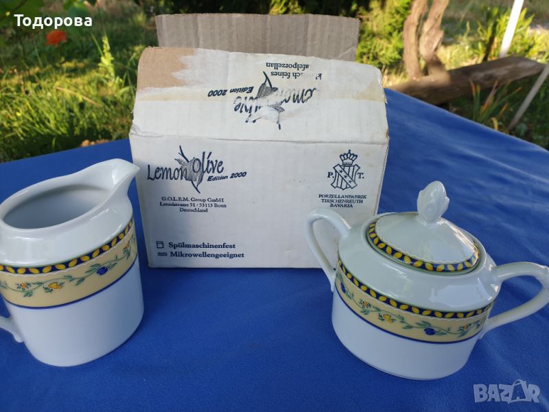 Porzellanfabrik tirschenreuth Bavaria lemon olive edition .Порцеланов сет -захарница и латиера.Неупотребявани.