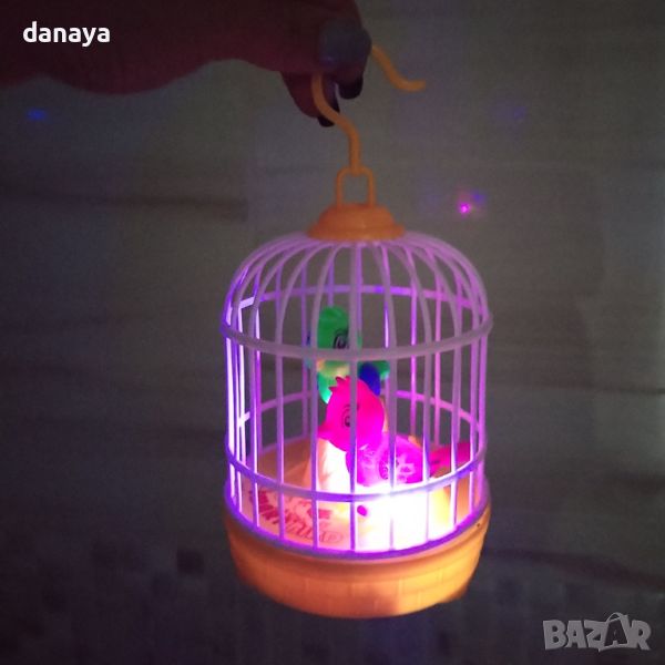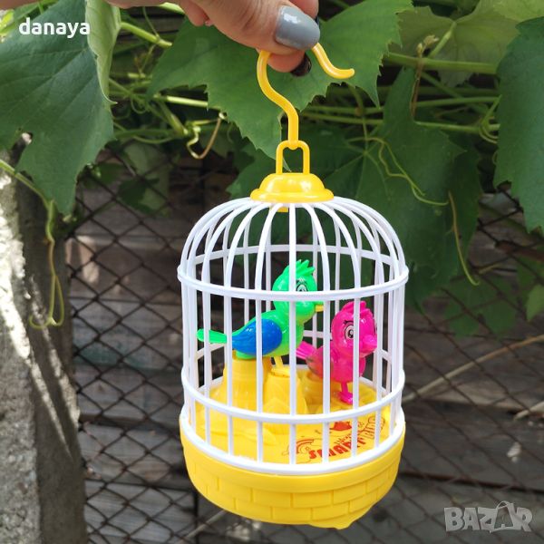 Детска играчка кафез с 2 пеещи птици и светлинни ефекти. Птичките движат телата си. След като завършат “рецитала” си, птичките започват друг с просто пляскане с ръце. Песента на птичките е приятна, а дизайнът на играчката е толкова сладък, че няма как да не се влюбиш в нея. Чудесен подарък за Коледа, рожден ден или всеки специален повод.