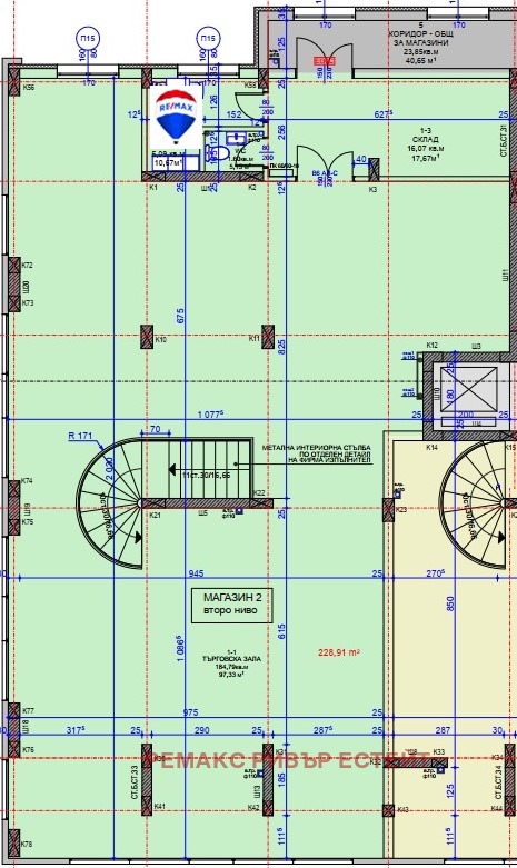 Помещението е с площ 228.91 кв.м и се намира на втори търговски етаж. Разполага с голяма търговска зала, стая за отдих за персонала, санитатен възел и складово помещение.. Подходящ за фитнес зала, спортен магазин, банков офис или друг вид бизнес. Идеален за инвестиция.