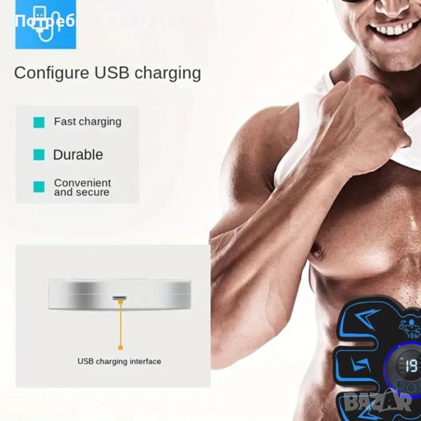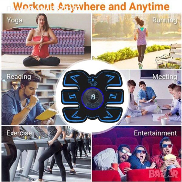 USB акумулаторна подложка за мускулен масаж,Безжичен тренажор за тяло ,ръце,корем - Спорт,Фитнес,Масажор за отслабване.