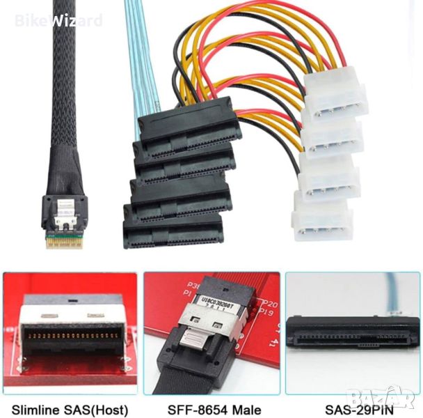 CY SFF-8654 4i 38Pin Slimline SAS 4.0 Host to 4 SAS 29Pin SFF-8482 Target Hard Disk Fanout НОВО